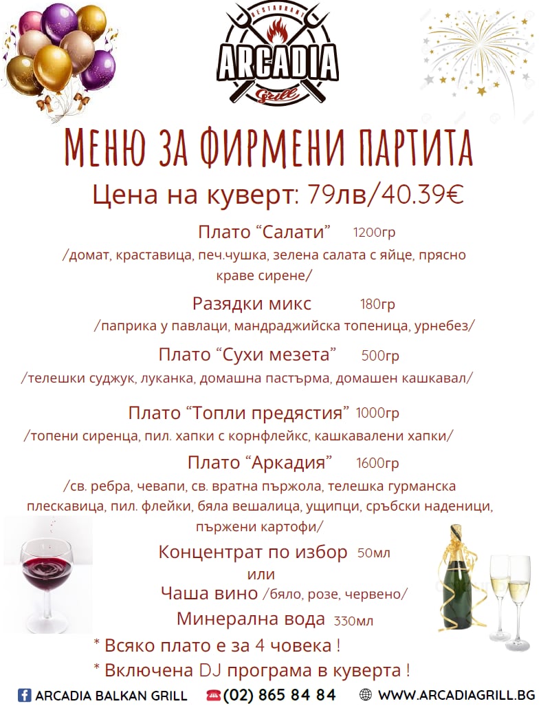 Изберете меню предложение, запазете дата, насладете се на вечерта!