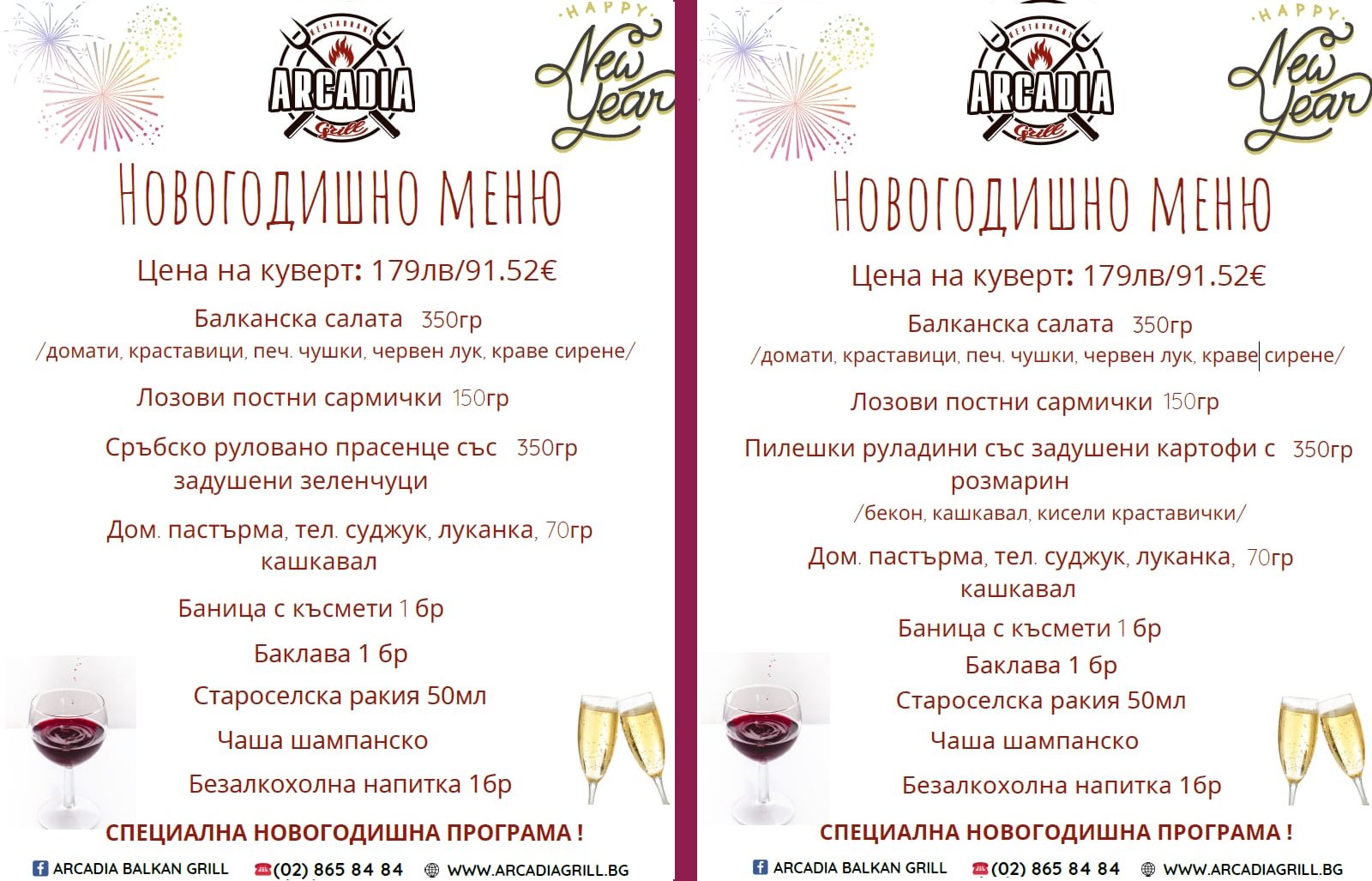 Заповядайте в Новогодишната празнична нощ в любимия ресторант Arcadia!